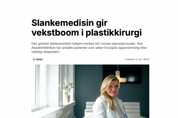 Akademikliniken ble nylig omtalt i Kapital for den økende etterspørselen etter hudoppstrammende kirurgi blant pasienter som har gått betydelig ned i vekt. Dr. Mette Haga, plastikkirurg og medisinsk faglig ansvarlig forklarer utviklingen