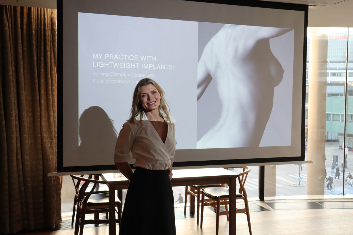 Som Natural Breast Beauty Ambassador for POLYTECH delte hun sin kunnskap med skandinaviske plastikkirurger. Under foredraget presenterte hun blant annet utfordrende pasientcaser fra egen praksis, og viste hvordan nøye planlegging og kirurgiske teknikker kan bidra til naturlige og harmoniske resultater.